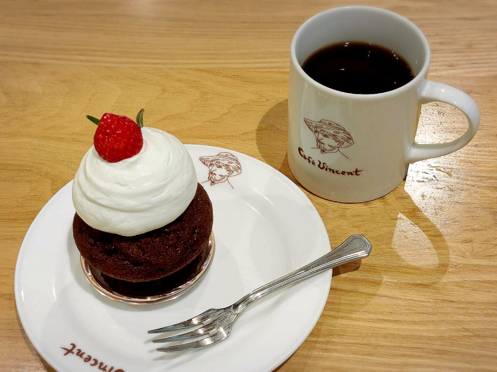 ゴッホのケーキを食べました。チョコが甘すぎなくて大人向けの味でした(*^o^*)