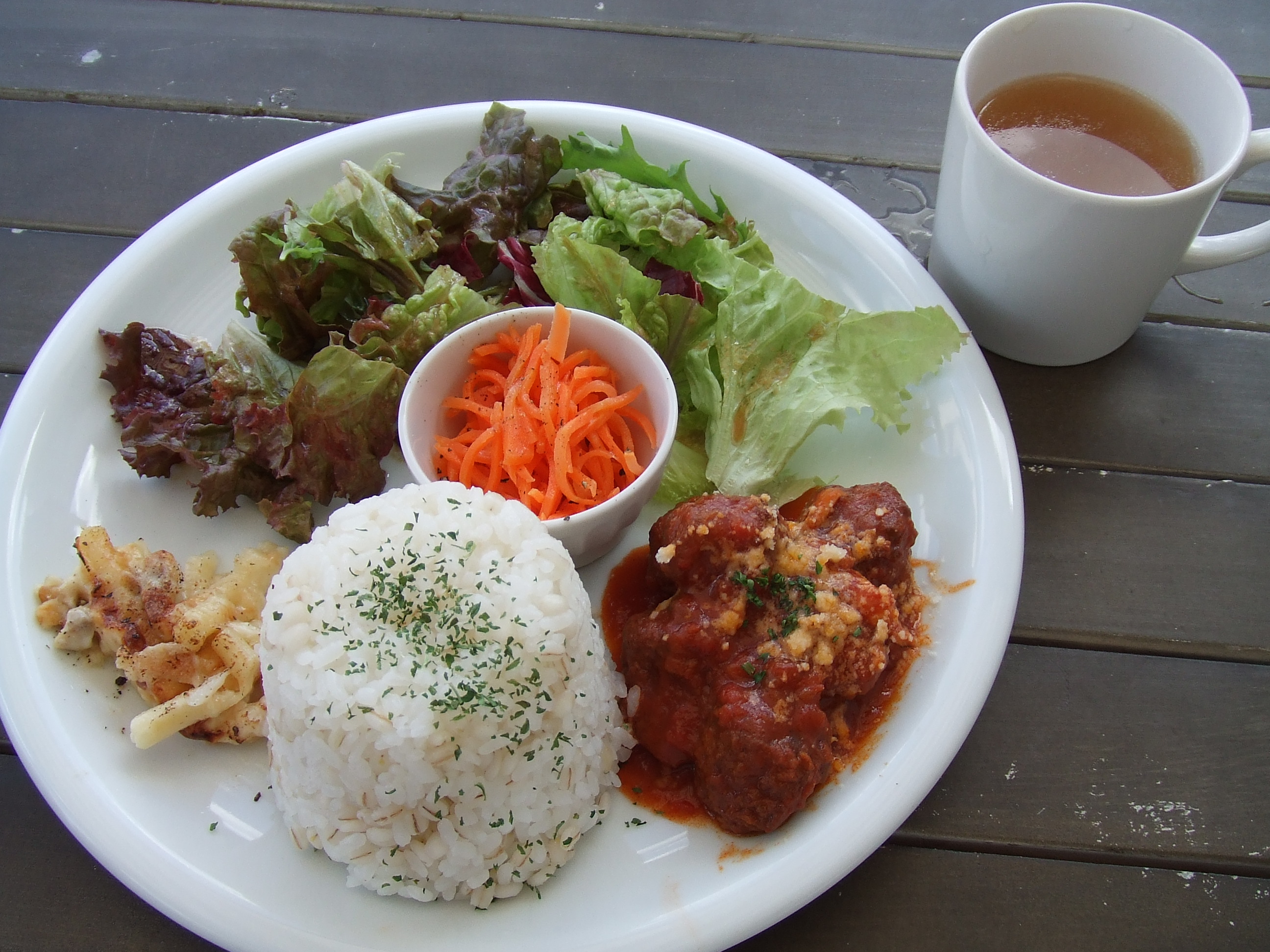 その日は天気も良く、外のテラス席があいていたのでそこで食べました。