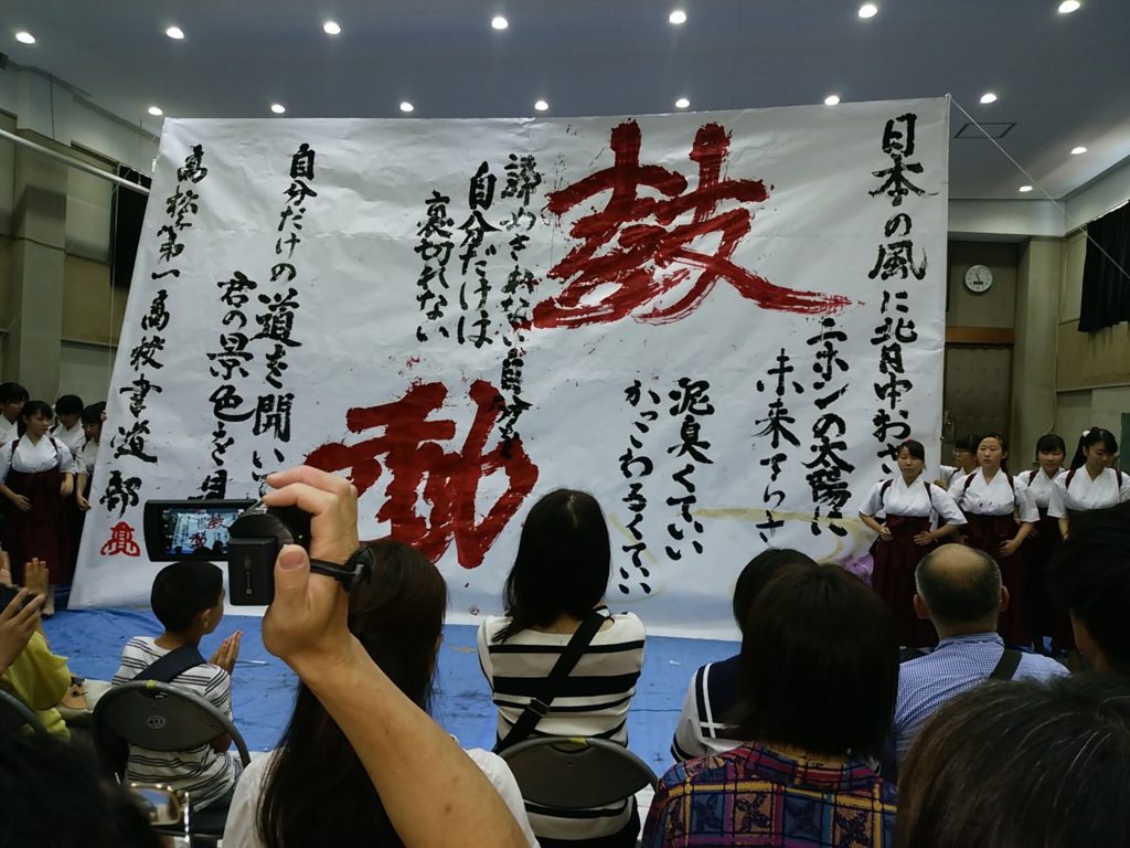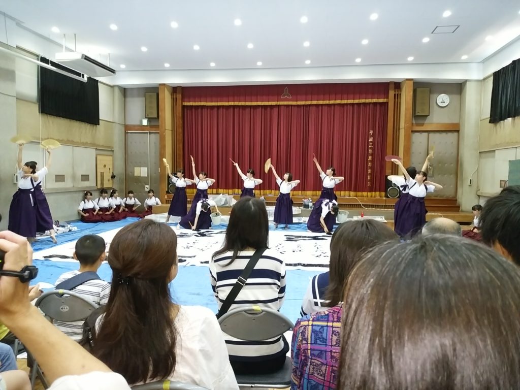 ステージ発表では、書道パフォーマンスを観ました。