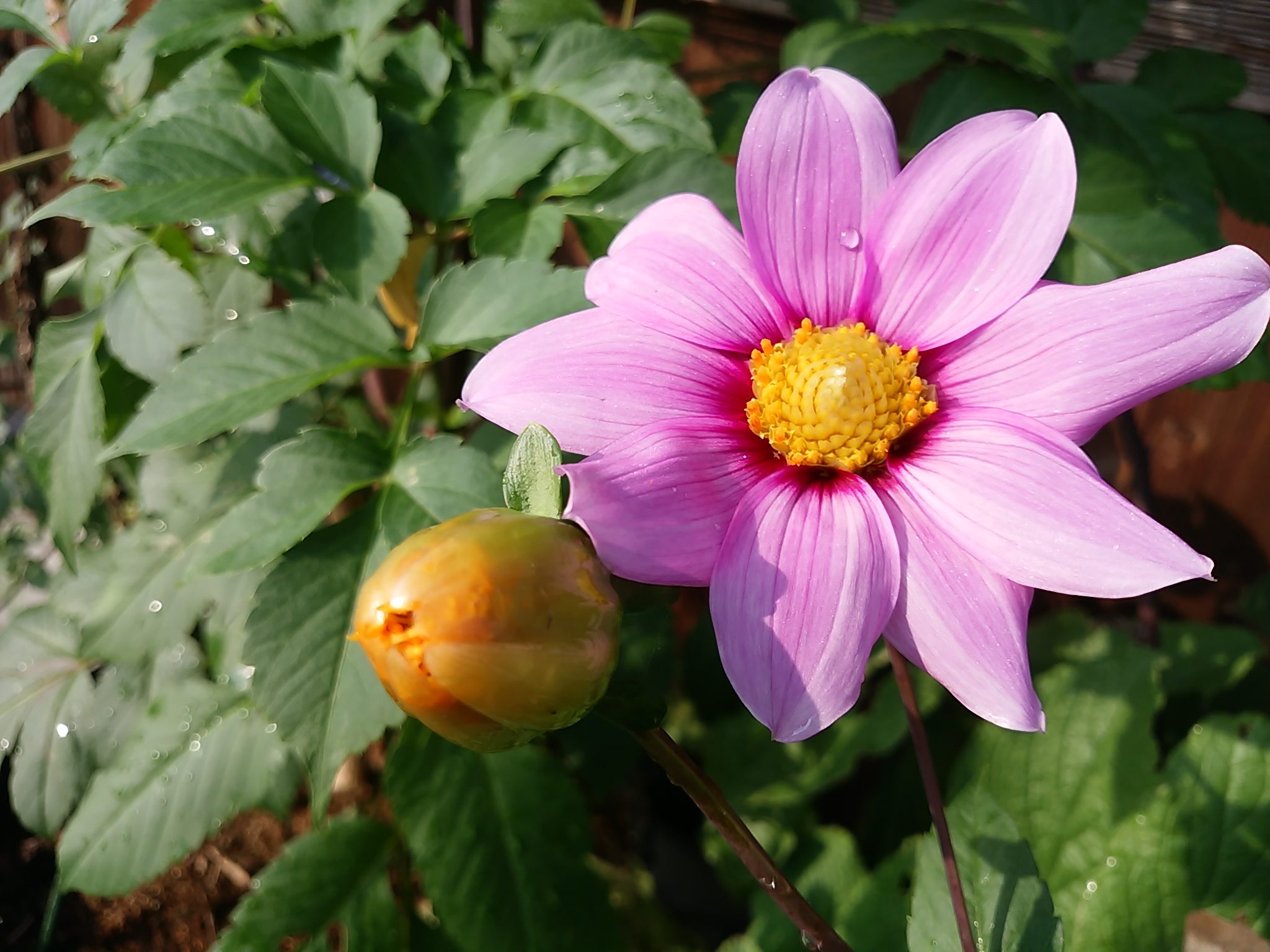 今年植えた皇帝ダリアの花が咲きました台風で枝が折れたりしたので無理かと思っていましたが